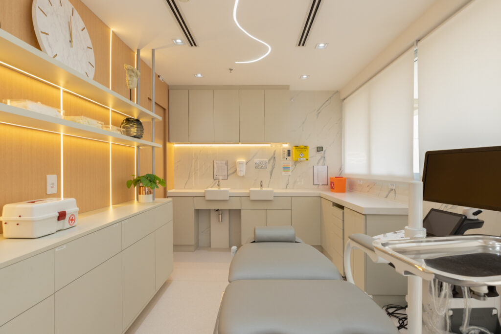A clínica do Dr. Wilson Farizato em Jundiaí conta com sala de procedimento equipada para infiltrações guiadas por ultrassom.